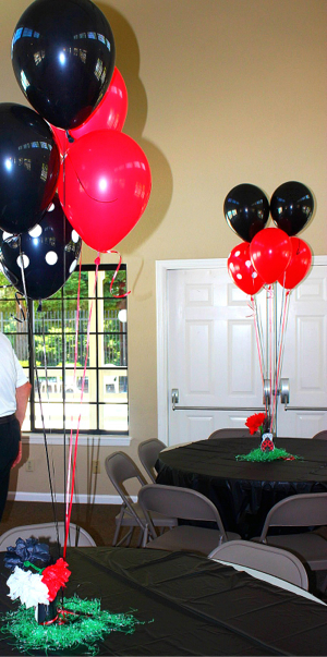 I attached balloons to the Centerpieces to add a little flare. The polka dot balloons can be purchased at party city.