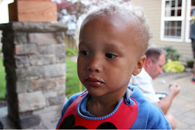 Boy then decided that he was brave enough to go back out to the war zone. He learned from his cousin how to plug his ears. Boy eventually left my lap and even threw some poppers on the porch!